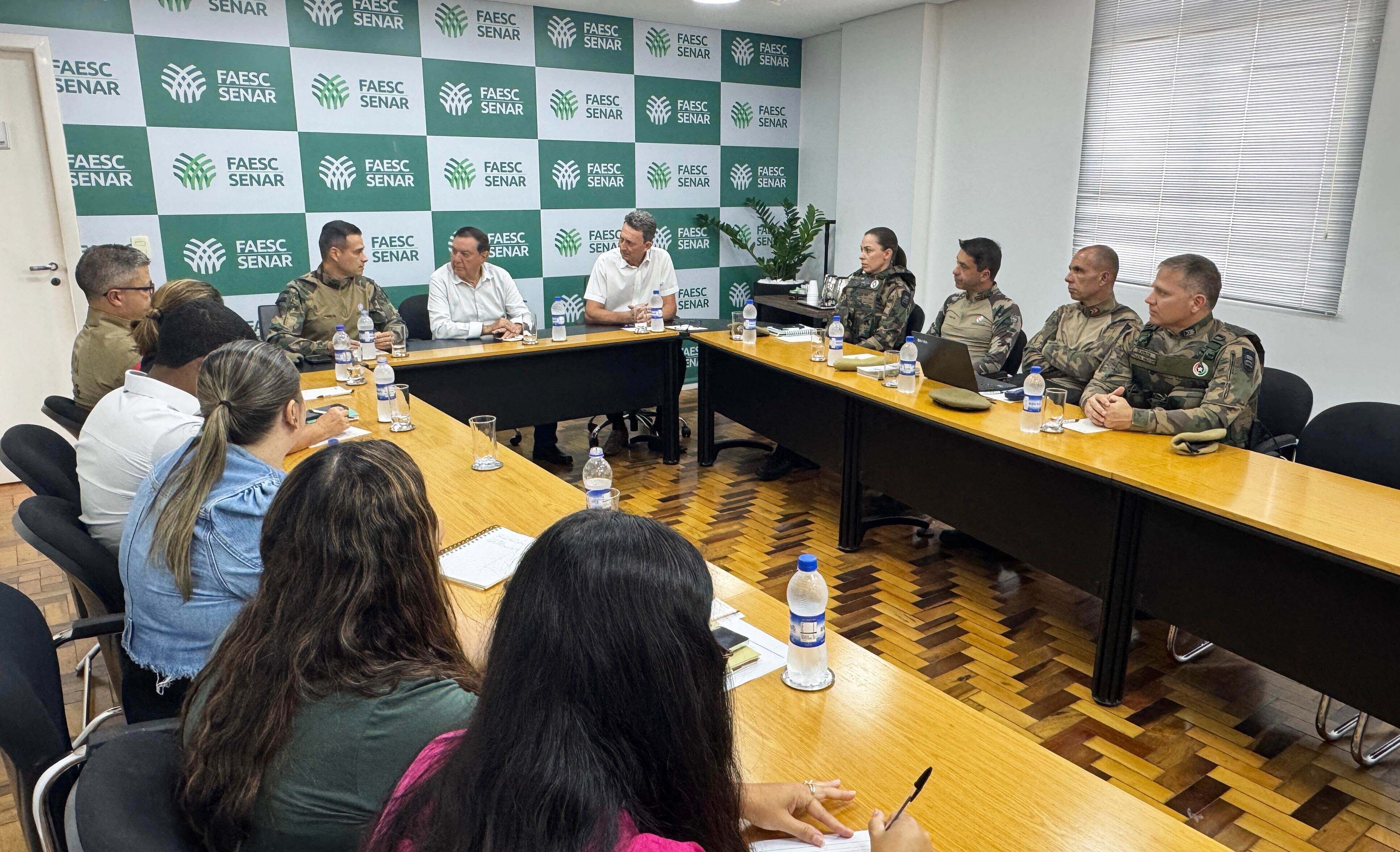 A comitiva, liderada pelo comandante do Comando de Polícia Militar Ambiental da PMSC, Coronel PM Fabrício Berto da Silveira, foi recebida pelo presidente do Sistema Faesc/Senar, José Zeferino Pedrozo, e pelo superintendente do Senar/SC, Gilmar Antônio Zanluchi, que destacaram a relevância da integração entre as instituições para apoiar o produtor rural catarinense. O encontro também contou com a participação da equipe do Sistema Faesc/Senar.