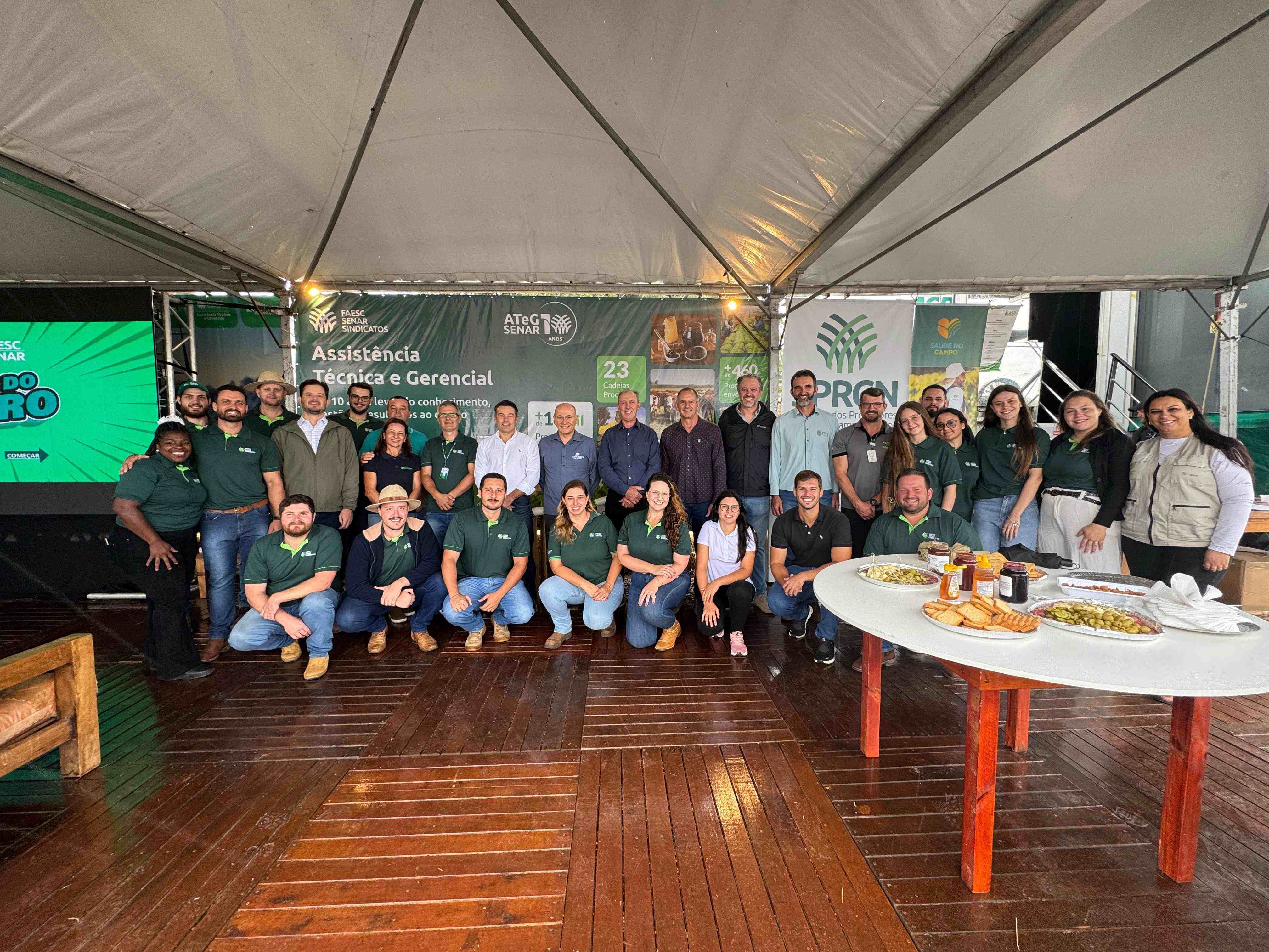 O Sistema CNA/Faesc/Senar participa do evento, em parceria com o Sindicato Rural de Campos Novos, com a Carreta Agro pelo Brasil pelo terceiro ano consecutivo. A estrutura itinerante foi destaque já no primeiro dia, ao registrar mais de 300 visitas. O espaço apresenta, de forma interativa, as ações do Sistema, com foco na disseminação de tecnologia, inovação e conhecimento no campo, por meio da Assistência Técnica e Gerencial (ATeG) e outras iniciativas. A programação também contempla atendimentos e orientações realizadas pela equipe técnica do Programa Saúde no Campo.