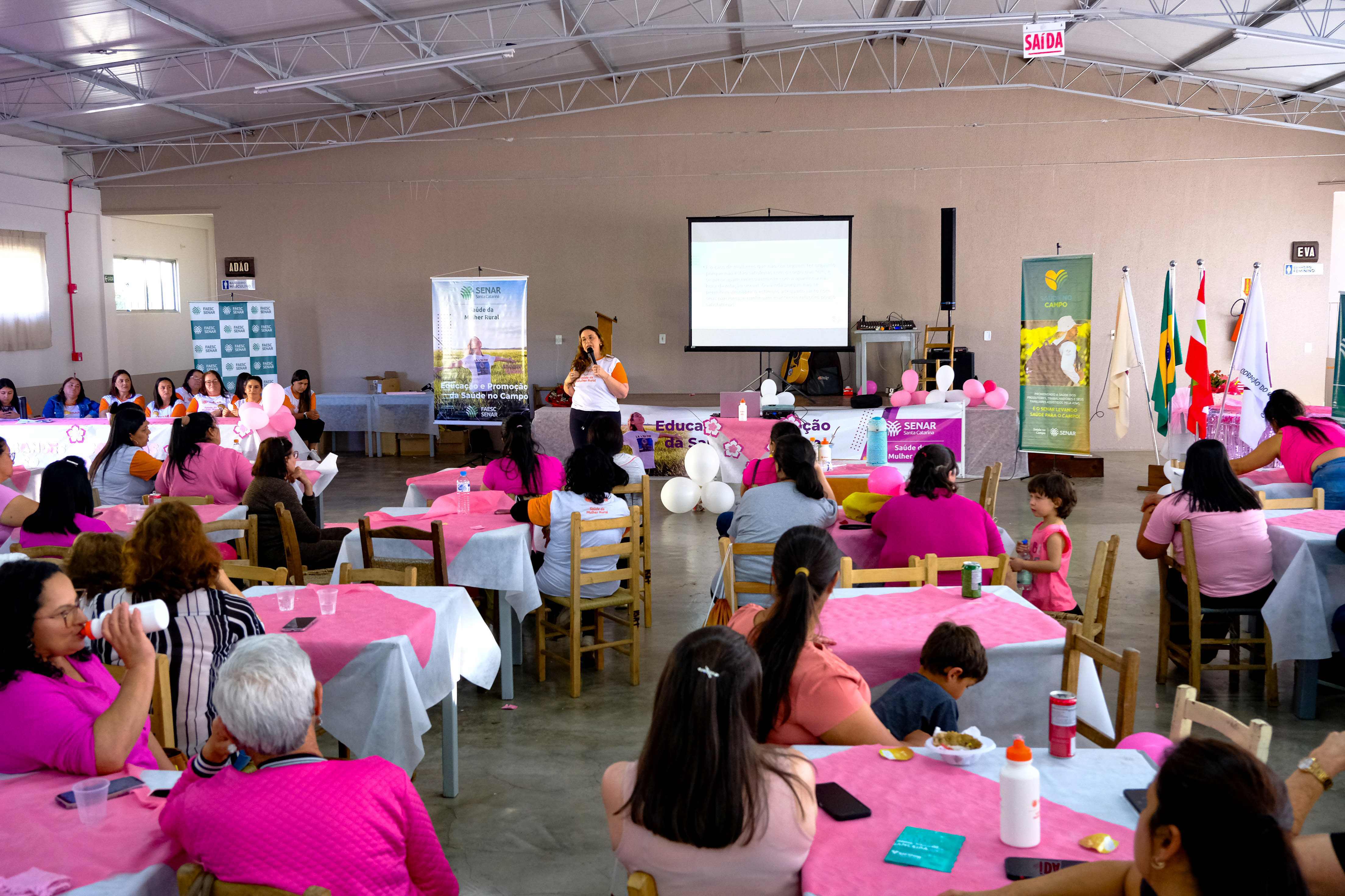 O município de Lebon Régis reuniu, no dia 15 de outubro, aproximadamente 250 mulheres rurais em uma ação do Programa Saúde da Mulher Rural. A iniciativa, promovida pelo Sistema Faesc/Senar, em parceria com o Sindicato dos Produtores Rurais de Lebon Régis e a Prefeitura Municipal, por meio da Secretaria de Saúde, teve como objetivo promover a educação para o cuidado com a saúde, com ênfase na prevenção e no diagnóstico precoce de doenças que afetam a população feminina.