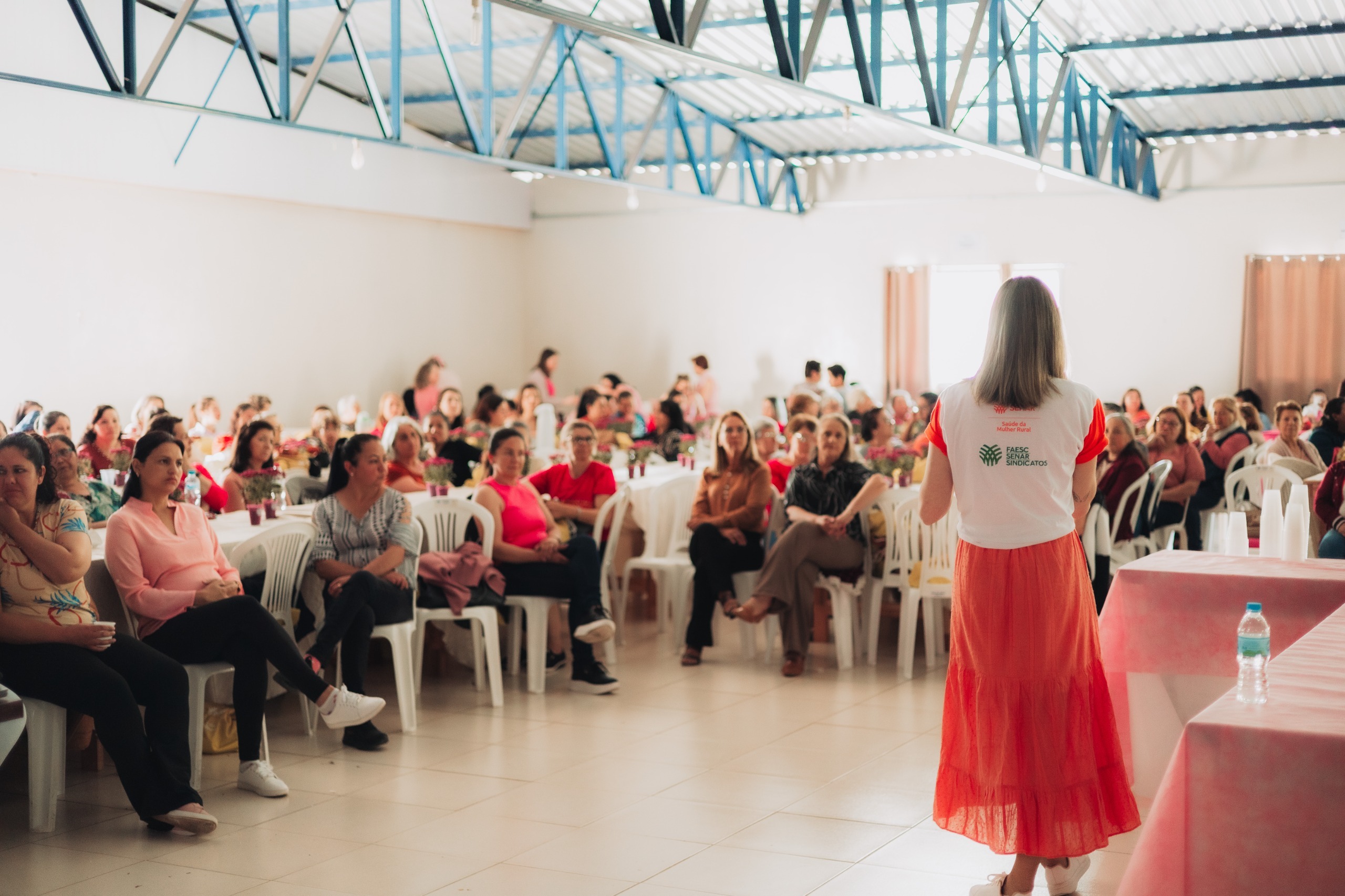 O encontro também proporcionou um momento de relaxamento e autocuidado, com foco em fisioterapia feminina. Outro destaque foi a palestra “Violência Contra a Mulher”, que contou com a participação de representantes da Polícia e de uma psicóloga, trazendo informações sobre os tipos de violência e as medidas de proteção disponíveis. Para encerrar, ocorreu a Roda de Conversa Superação, com Salete Pandini Locatelli e Salete Liskivinski.