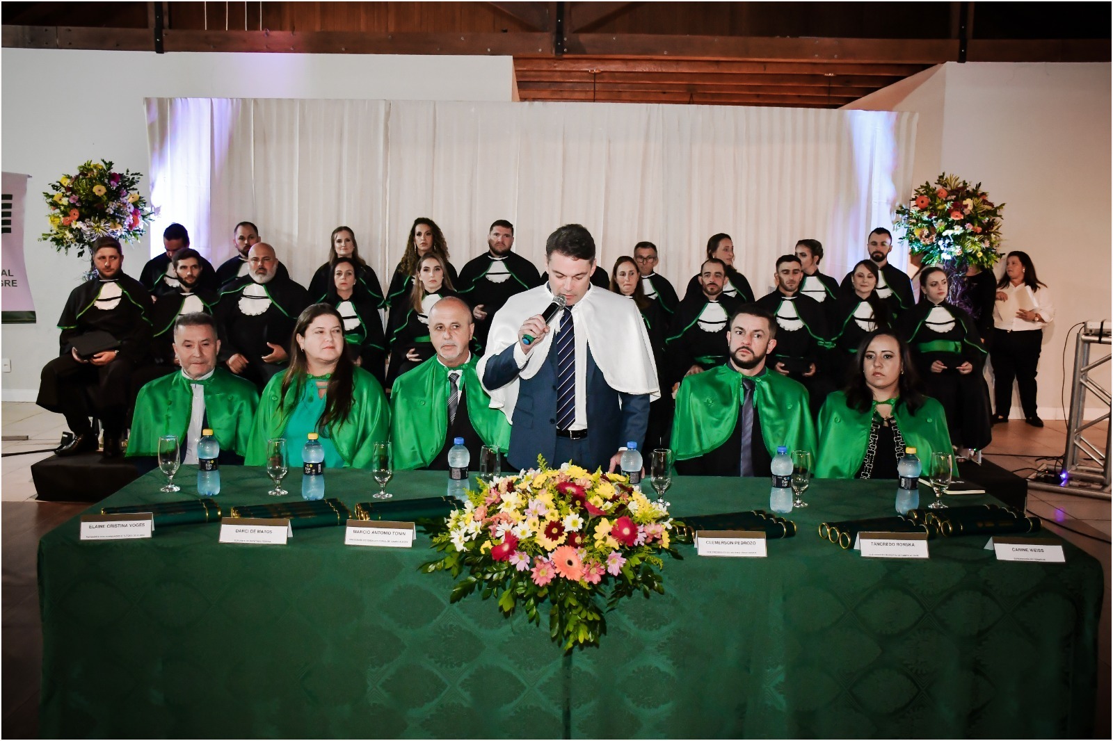 A colação de grau foi conduzida pelo vice-presidente da Faesc, Clemerson Argenton Pedrozo, e teve como anfitrião o presidente do Sindicato Rural de Campo Alegre, Marcio Antonio Tonin. Também compuseram a mesa de honra o vice-prefeito de Campo Alegre, Tancredo Ronska; o suplente de deputado federal, Darci de Matos; a supervisora regional do Senar/SC, Carine Weiss; e a paraninfa da turma, Elaine Cristina Voges.