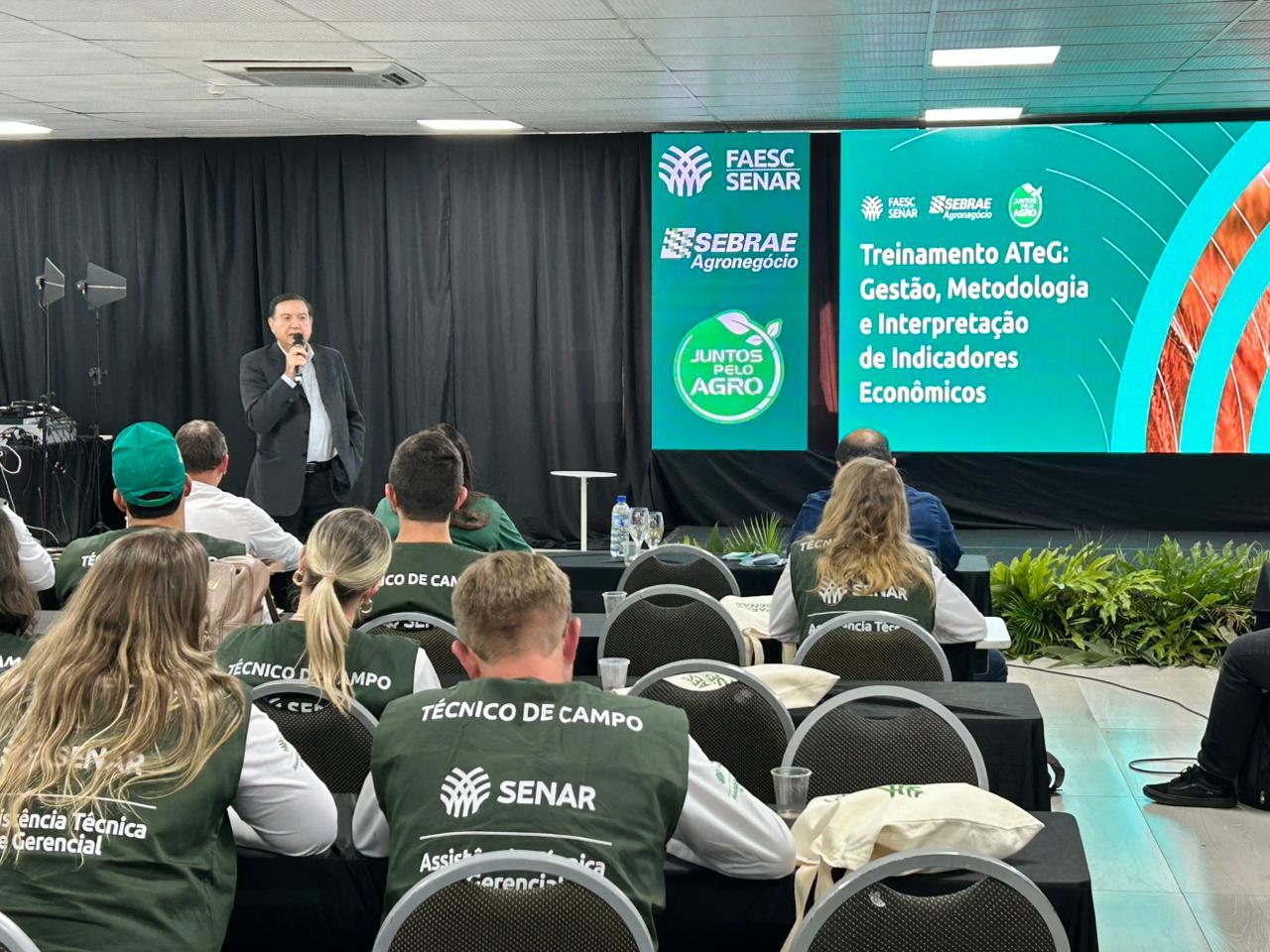 O Sistema Faesc/Senar e o Sebrae/SC promoveram o Treinamento ATeG: Gestão, Metodologia e Interpretação de Indicadores Econômicos, nos dias 10 e 11 de novembro (segunda e terça-feira), em São José, na Grande Florianópolis. A iniciativa teve como objetivo fortalecer a atuação das equipes técnicas da Assistência Técnica e Gerencial (ATeG) no que se refere ao uso de ferramentas de gestão que auxiliam os produtores rurais na tomada de decisões baseadas em indicadores técnicos e econômicos.